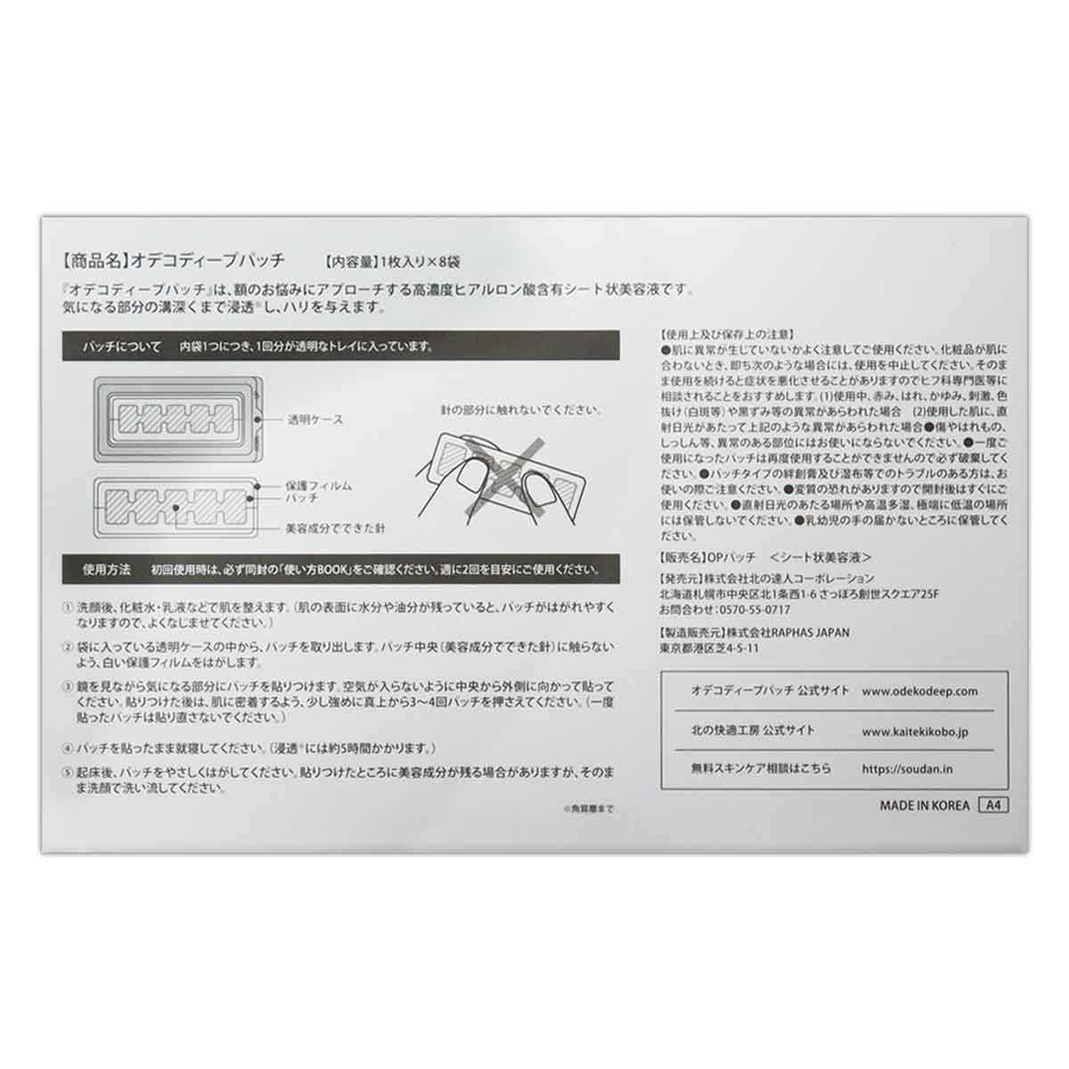 ※本商品には「使い方BOOK」は付属しておりません。初回使用時は発売元のWebサイト<『オデコディープパッチ』の使用方法について>をご確認の上正しくご使用ください。