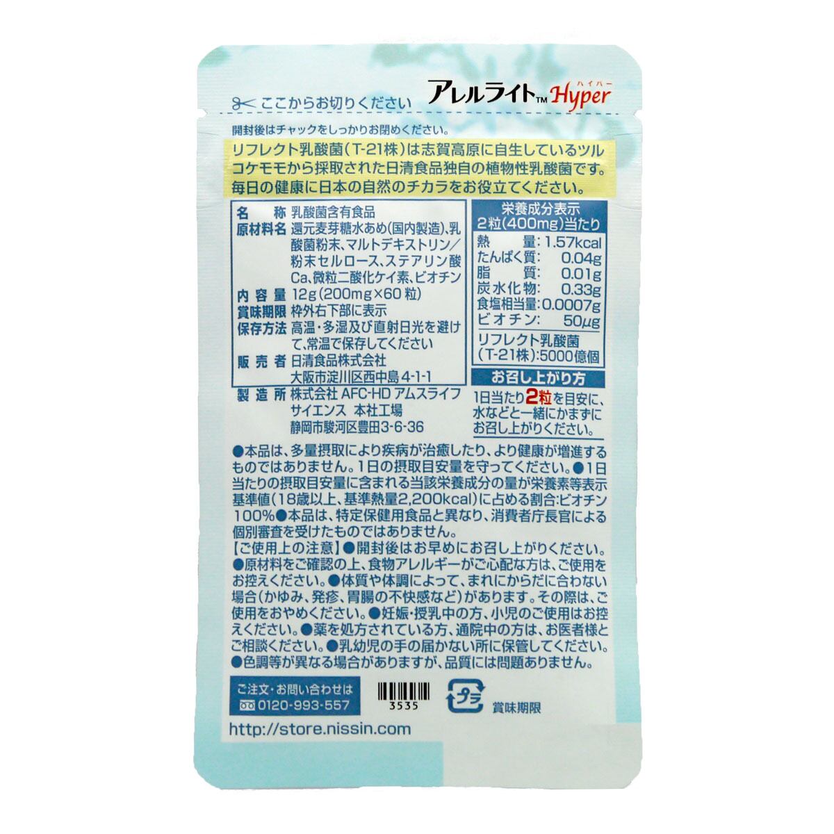 【 3袋セット 】 日清食品 アレルライトハイパー 60粒 約1ヶ月分 サプリメント メール便送料無料SPL / アレルライト60粒S02-01 / ALHP06-03P