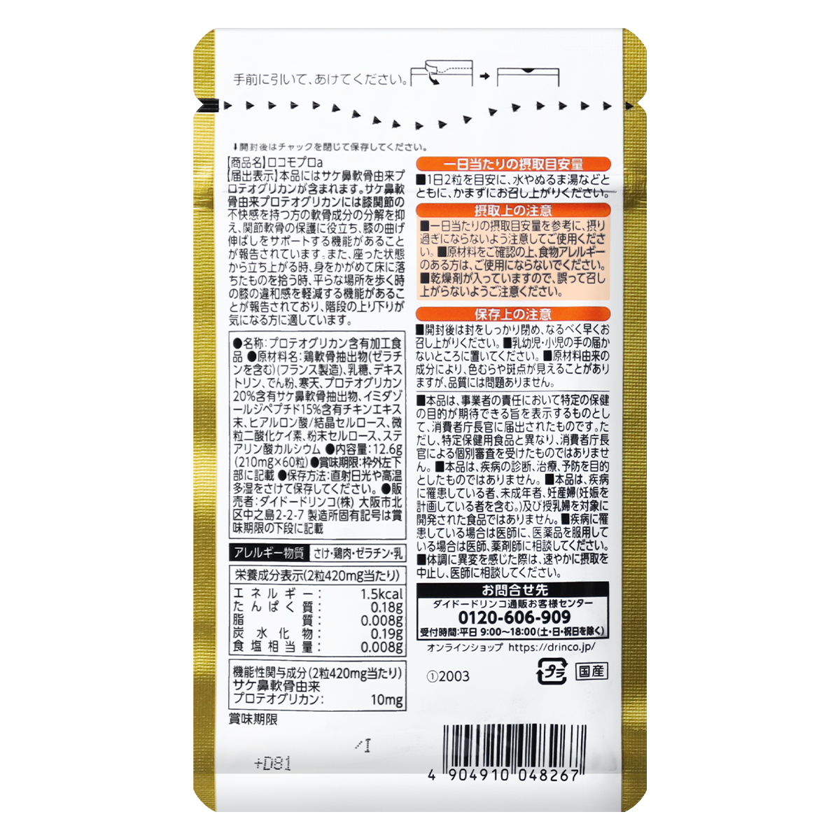 DyDoヘルスケア ロコモプロ プロテオグリカン 約1ヶ月分 ( 200mg×60粒 ) メール便送料無料SPL / DyDoロコモプロ30日分S01-01 / DDLP30-01P