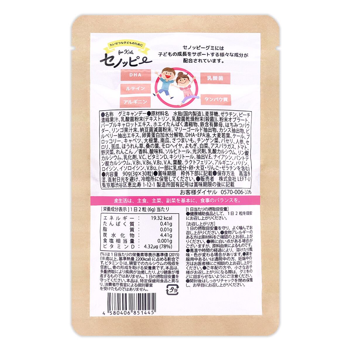 【 2袋セット 】 セノッピー もも味 90g ( 3g × 30粒 ) LEFT-U 子ども 成長 サポート カルシウム メール便送料無料SPL / セノッピーももS05-04 / SNPYPE-02P