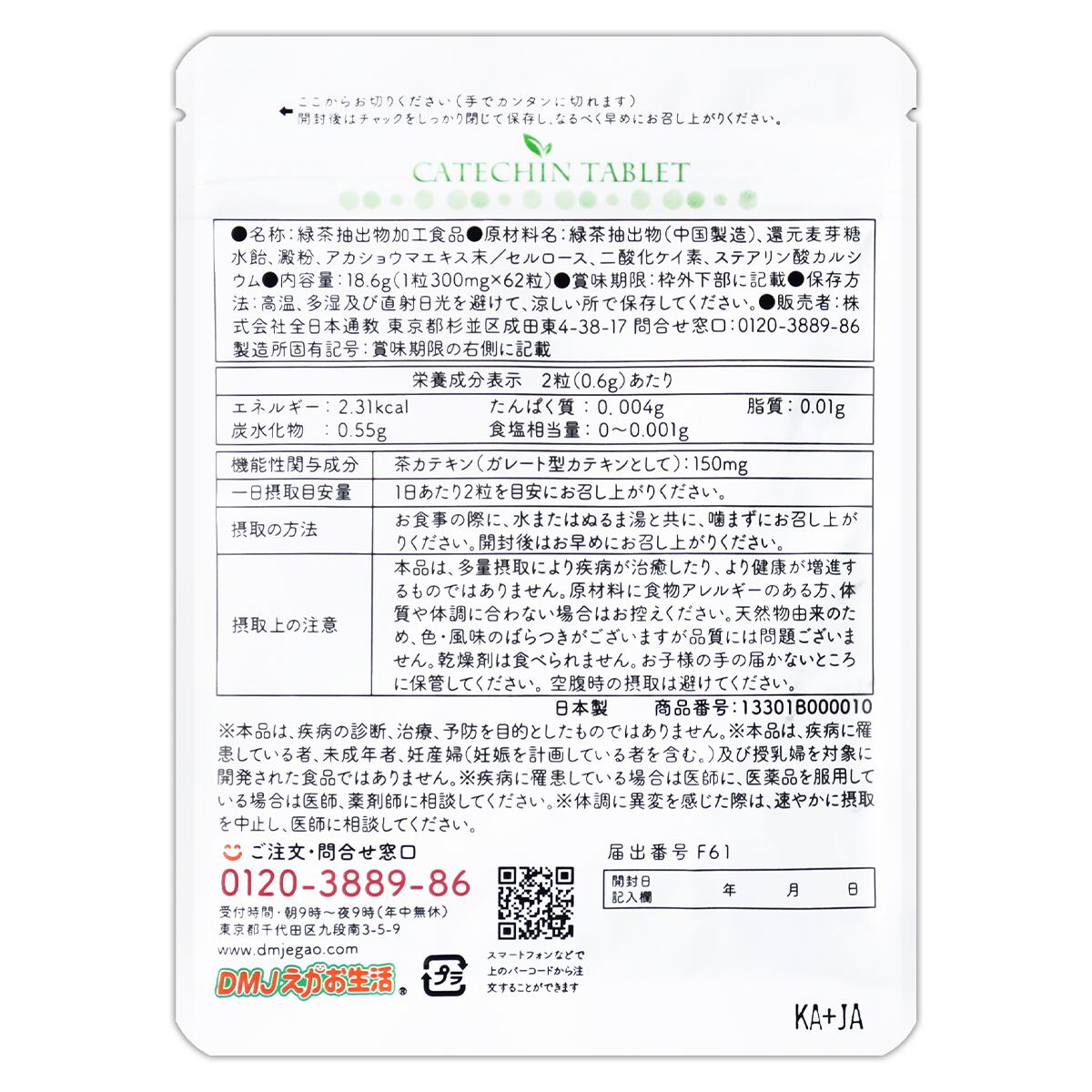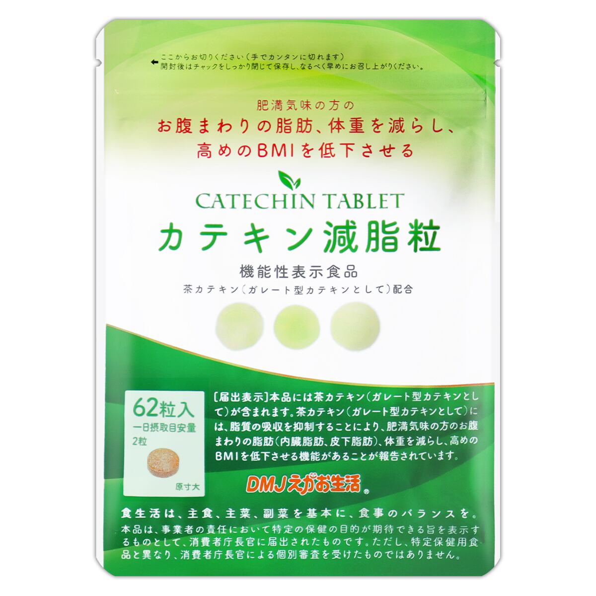 カテキン減脂粒 18.6g ( 1粒300mg × 62粒 ) 31日分 DMJえがお生活 サプリ サプリメント カテキン メール便送料無料SPL / カテキン減脂粒S01-01 / KTKGST-01P