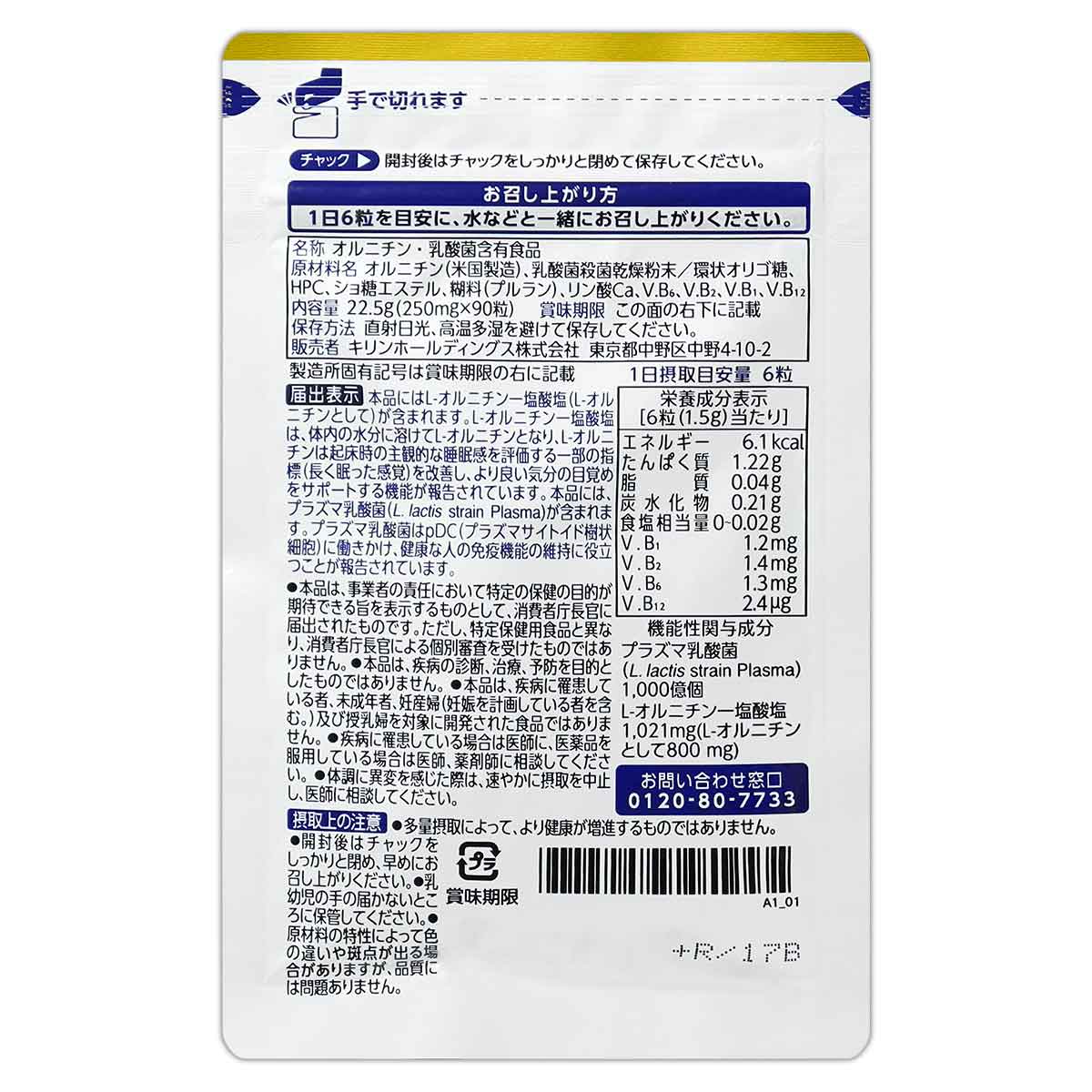 KIRIN オルニチン アクティブダブル 22.5g ( 250mg × 90粒 ) 約15日分 免疫 [機能性表示食品] メール便送料無料SPL / オルニチンダブルS04-02 / ORUACW-01P