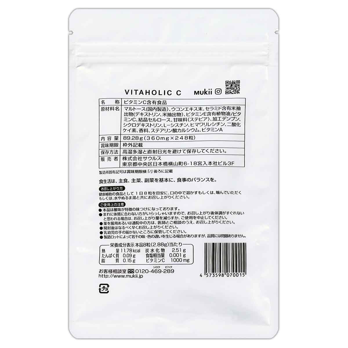 【 訳あり特価商品 】 ビタホリックC Vitaholic C 89.28g ( 360mg × 248粒 ) Mukii サプリ ビタミン メール便送料無料SPL / ビタホリックCW00-02 / VTHLCC-01P