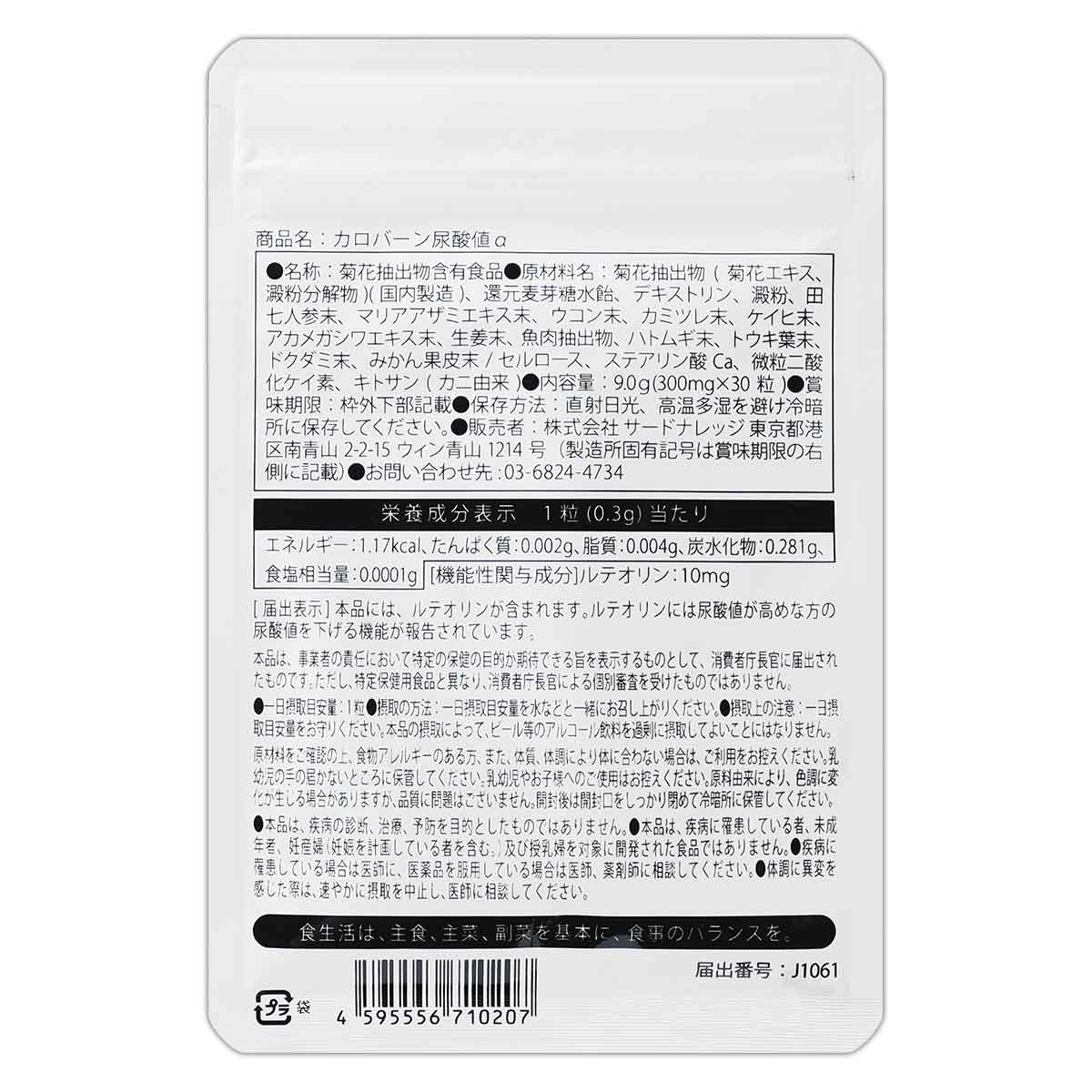 【 訳あり特価商品 】 カロバーン尿酸値α 9.0g ( 300mg × 30粒 ) 30日分 [機能性表示食品] メール便送料無料SPL / カロバーンW00-02 / CROBAN-01P