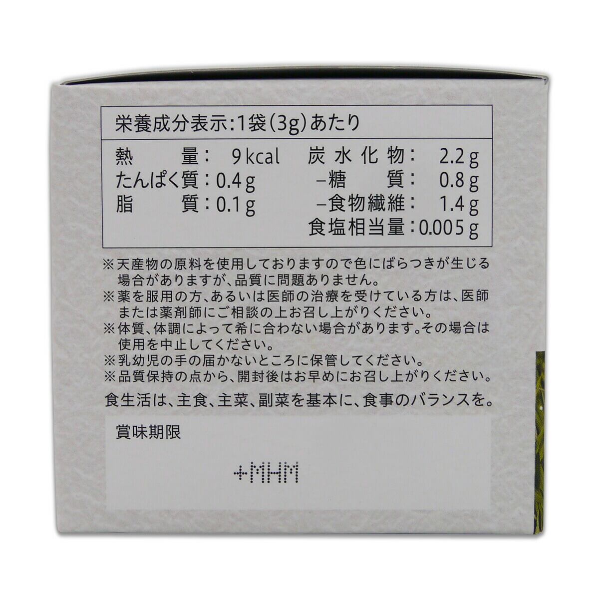 桑葉末、植物発酵エキス末(難消化性デキストリン、植物発酵エキス)、大麦若葉末、抹茶、でんぷん、有胞子乳酸菌、ビタミンC