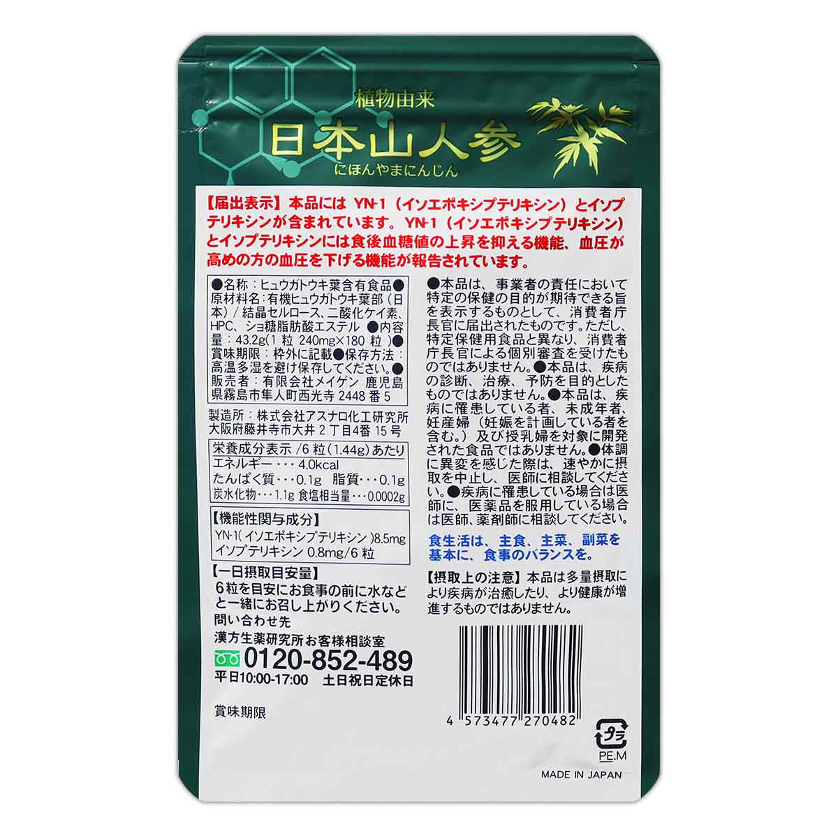 日本山人参を原材料とするサプリメント「日本山人参」は、毎日の健康維持を考えて開発された機能性表示食品です。