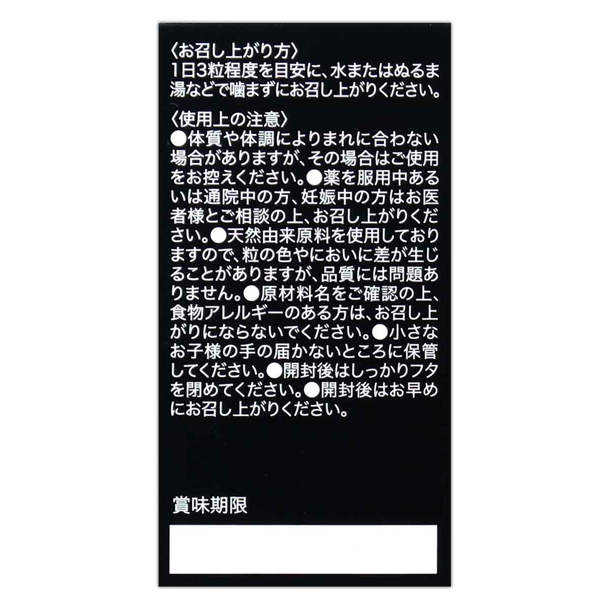 ●疾病の予防や治療の効果を期待して用いるものではありません。●食生活は、主食、主菜、副菜を基本に、食事のバランスを。●原材料をご参照の上、食物アレルギーのある方はお召し上がりをお控え下さい。●体質や体調により、稀に合わない場合がございますが、その場合はご使用をお控え下さい。●薬を服用あるいは通院中の方、妊娠、授乳中の方は医師にご相談の上お召し上がりください。●体調に異変を感じた際は、速やかに摂取を中止し、医師に相談してください。●天然由来原料を使用しておりますので、粒の色やにおいに差が生じることがありますが、品質には問題ありません。