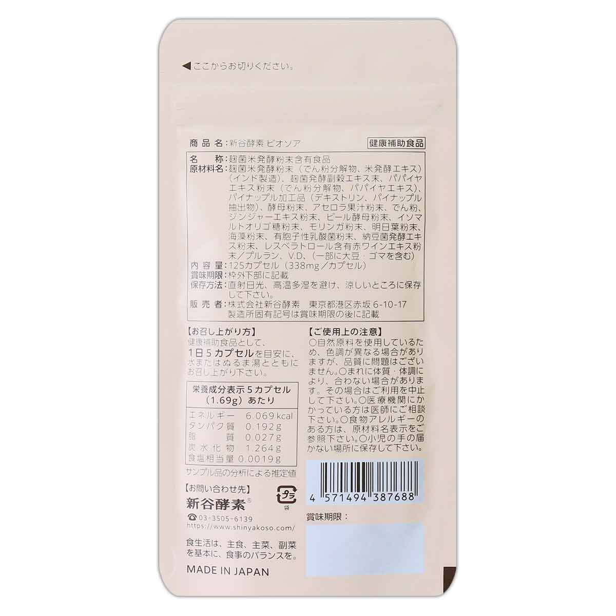 【 2袋セット 】 ビオソア BiOSOAR 125カプセル ( 338mg / カプセル ) 新谷酵素 サプリ サプリメント 酵素 メール便送料無料SPL / ビオソアS03-05 / BIOSOA-02P