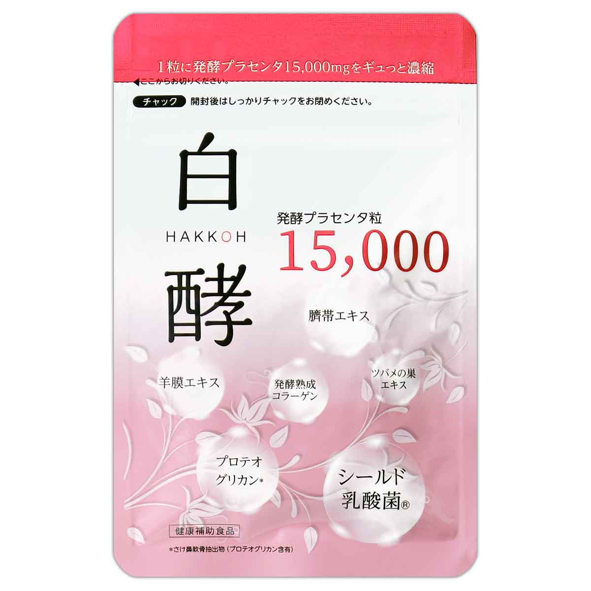 「発酵熟成プラセンタエキス濃縮純末」を1粒あたり75mg(発酵熟成プラセンタエキス換算15,000mg)配合。