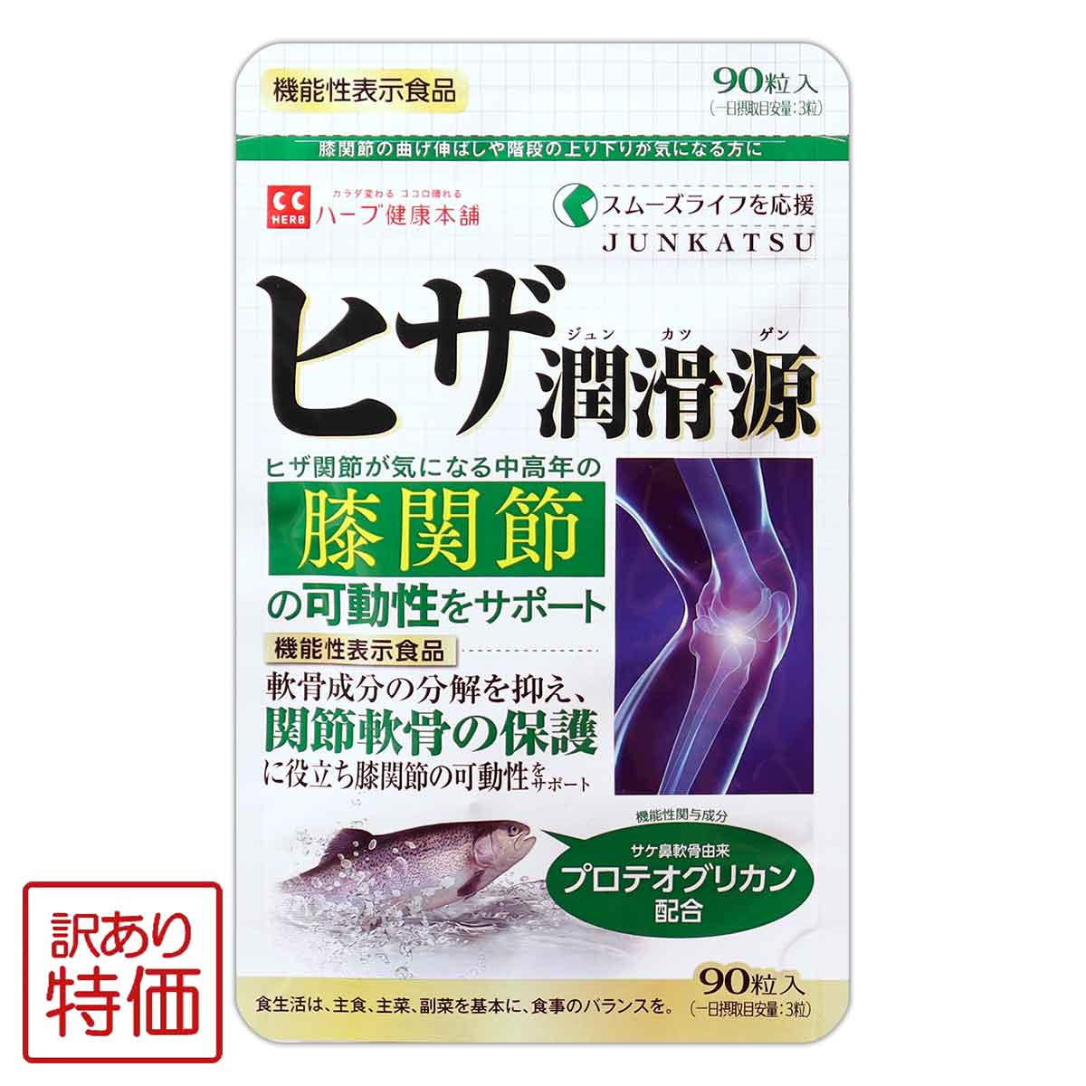 【 訳あり特価商品 】 ヒザ潤骨源 22.5g ( 250mg × 90粒 ) ハーブ健康本舗 ヒザ [機能性表示食品] メール便送料無料SPL / ヒザ潤滑源W00-02 / HZJKGN-01P