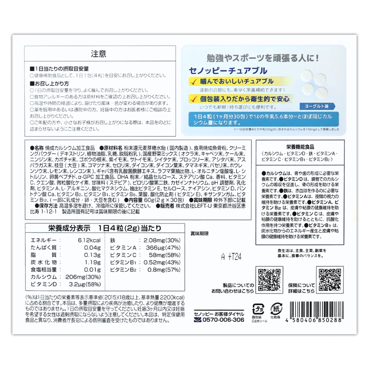 【 3箱セット 】 セノッピー チュアブル ヨーグルト味 60g ( 2g × 30包 ) LEFT-U 子ども 成長 配送料無料SPL / セノッピーチュアS07-04 / SNPYCB-03P