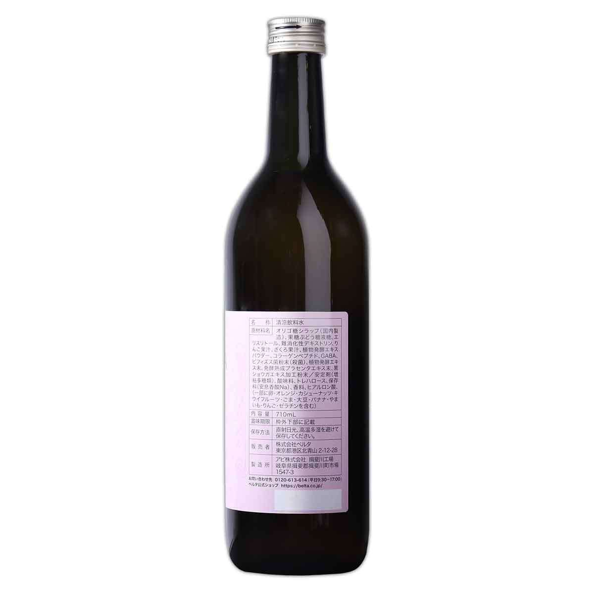 オリゴ糖シラップ(国内製造)、果糖ぶどう糖液糖、エリスリトール、難消化性デキストリン、りんご果汁、ざくろ果汁、植物発酵エキスパウダー、コラーゲンペプチド、GABA、ビフィズス菌粉末(殺菌)、植物発酵エキス末、発酵熟成プラセンタエキス末、黒ショウガエキス加工粉末/安定剤(増粘多糖類)、酸味料、トレハロース、保存料(安息香酸Na)、香料、ヒアルロン酸、(一部に卵・オレンジ・カシューナッツ・キウイフルーツ・ごま・大豆・バナナ・やまいも・りんご・ゼラチンを含む)