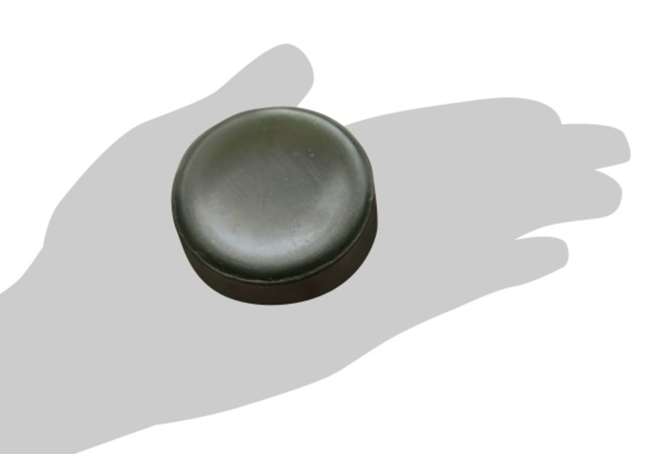 「草根木皮(そうこんもくひ)たまり」をぎゅっと固めた深緑の石けん。