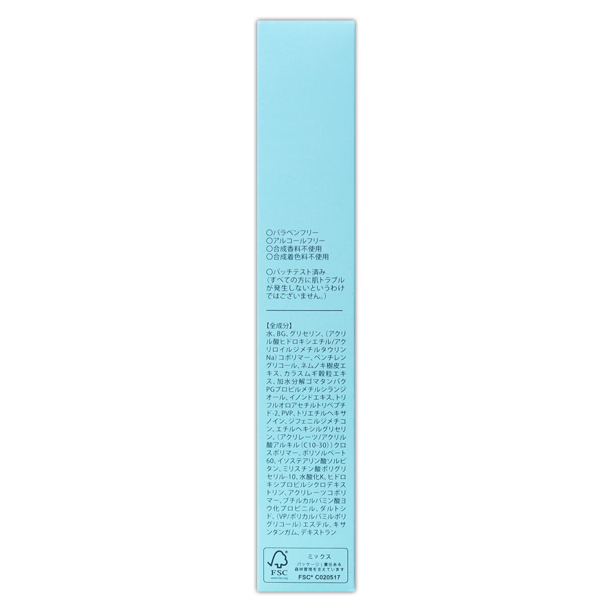 水、BG、グリセリン、(アクリル酸ヒドロキシエチル/アクリロイルジメチルタウリンNa)コポリマー、ペンチレングリコール、ネムノキ樹皮エキス、カラスムギ穀粒エキス、加水分解ゴマタンパクPGプロピルメチルシランジオール、イノンドエキス、トリフルオロアセチルトリペプチド-2、PVP、トリエチルヘキサノイン、ジフェニルジメチコン、エチルヘキシルグリセリン、(アクリレーツ/アクリル酸アルキル(C10-30))クロスポリマー、ポリソルベート60、イソステアリン酸ソルビタン、ミリスチン酸ポリグリセリル-10、水酸化K、ヒドロキシプロピルシクロデキストリン、アクリレーツコポリマー、ブチルカルバミン酸ヨウ化プロピニル、ダルトシド、(VP/ポリカルバミルポリグリコール)エステル、キサンタンガム、デキストラン