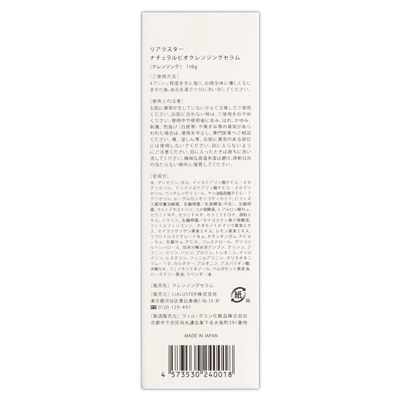 【 訳あり特価商品 】 リアラスター LIALUSTER ナチュラルビオクレンジングセラム 110g メイク落とし 配送料無料NYH / リアラスタークレンズW00-01 / RARCLS-01P