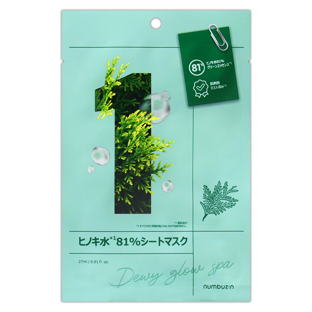【 5袋セット 】 ナンバーズイン numbuzin 1番 ヒノキ水81%シートマスク 1袋 ( 1枚入り ) 27ml メール便送料無料NYH / ナンバーズ1番マスクS01-02 / NMBSM1-05P