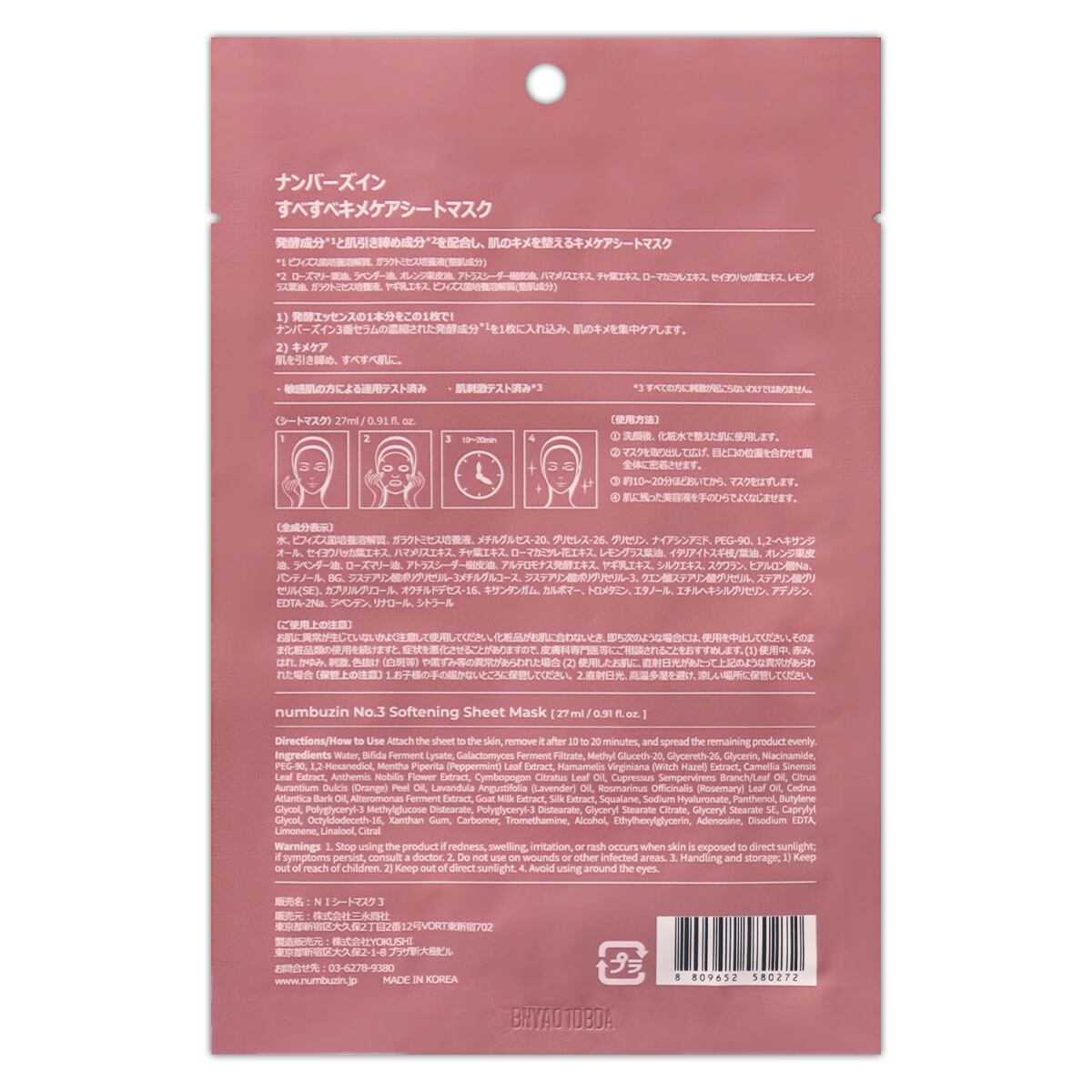 【 2袋セット 】 ナンバーズイン numbuzin 3番 すべすべキメケアシートマスク 1袋 ( 1枚入り ) メール便送料無料NYH / ナンバーズ3番マスクS03-02 / NMBSM3-02P