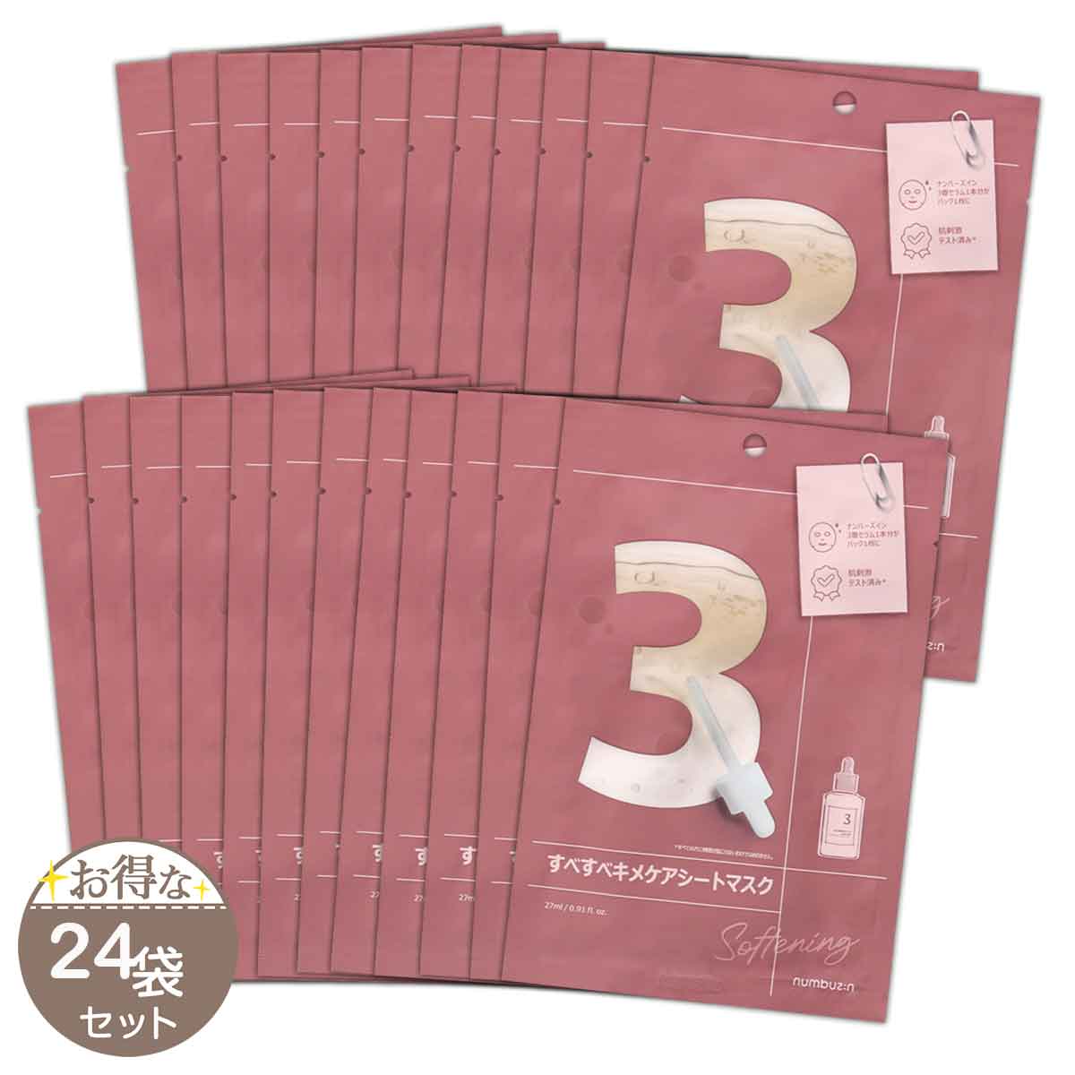【 24袋セット 】 ナンバーズイン numbuzin 3番 すべすべキメケアシートマスク 1袋 ( 1枚入り ) 配送料無料NYH / ナンバーズ3番マスクS03-02 / NMBSM3-24P