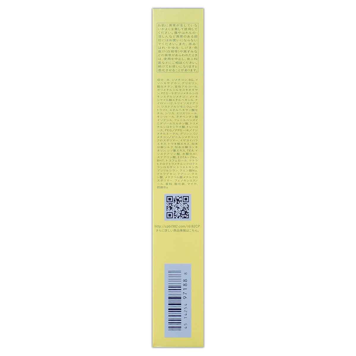水、ジメチコン、BG、イソヘキサデカン、グリセリン、酸化チタン、変性アルコール、ポリメチルシルセスキオキサン、PEG-9ポリジメチルシロキシエチルジメチコン、メトキシケイヒ酸エチルヘキシル、ナイロン-12、トリイソステアリン、ジステアルジモニウムヘクトライト、エチルヘキサン酸セチル、シリカ、エリスリトール、キシリトール、ネオペンタン酸イソデシル、フェニルベンズイミダゾールスルホン酸、トリメチルシロキシケイ酸、トレハロース、PEG/PPG-14/7ジメチルエーテル、グリシン、(ジメチコン/ビニルジメチコン)クロスポリマー、イザヨイバラエキス、トウキ根エキス、加水分解シルク、加水分解コンキオリン、シソ葉エキス、TEA、イソステアリン酸、水酸化AL、ステアリン酸、EDTA-2NA、BHT、トコフェロール、テトラヒドロテトラメチルシクロテトラシロキサン、トリエトキシカプリリルシラン、クエン酸NA、テトラデセン、テアニン、クエン酸、メタクリル酸メチルクロスポリマー、フェノキシエタノール、香料、酸化鉄、マイカ、硫酸BA