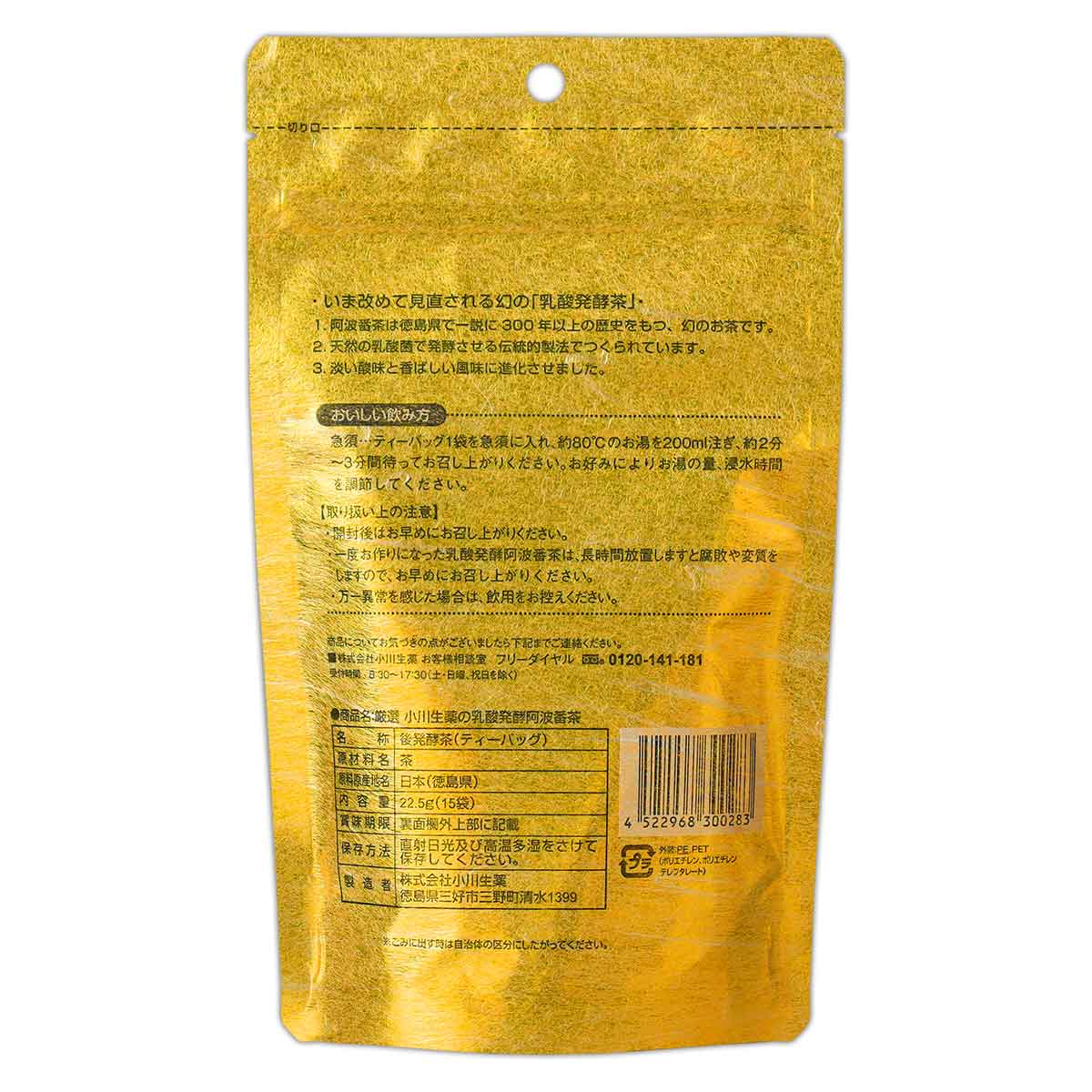 厳選 小川生薬 乳酸発酵 阿波番茶 阿波晩茶 22.5g ( 15袋入り ) 無漂白 ティーバッグ 乳酸菌発酵茶 お茶 メール便送料無料FOD / 阿波番茶S05-02 / AWBNCH-01P