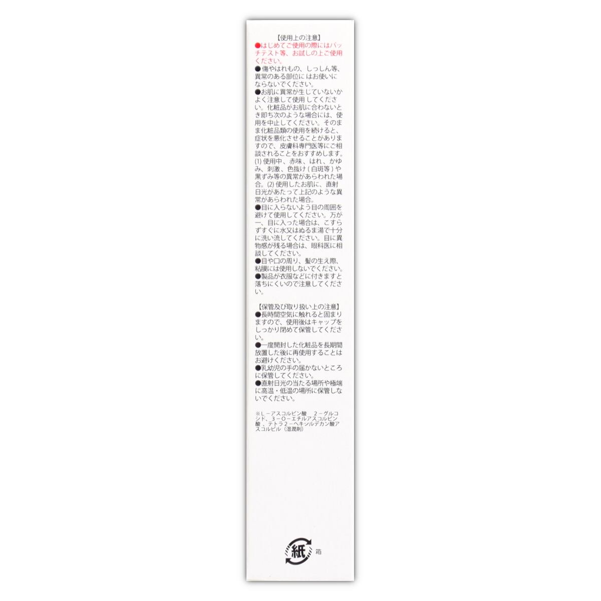 ●はじめてのご使用の際にはパッチテスト等、お試しの上ご使用ください。●傷、湿疹等、お肌に異常のある時は使用しないでください。●お肌に異常が生じていないかよく注意して使用してください。使用中、赤み、かゆみ、刺激、色抜け(白斑等)や黒ずみ等の異常が出た場合、また日光があたって同じような異常が出た場合は、使用を中止して、皮膚科専門医等にご相談されることをおすすめします。●目に入らないよう目の周囲を避けて使用してください。万が一、目に入った場合は、こすらずすぐに水又はぬるま湯で十分に洗い流してください。目に異物感が残る場合は、眼科医に相談してください。●目や口の周り、髪の生え際、粘膜には使用しないでください。●製品が衣類などに付きますと落ちにくいので注意してください。