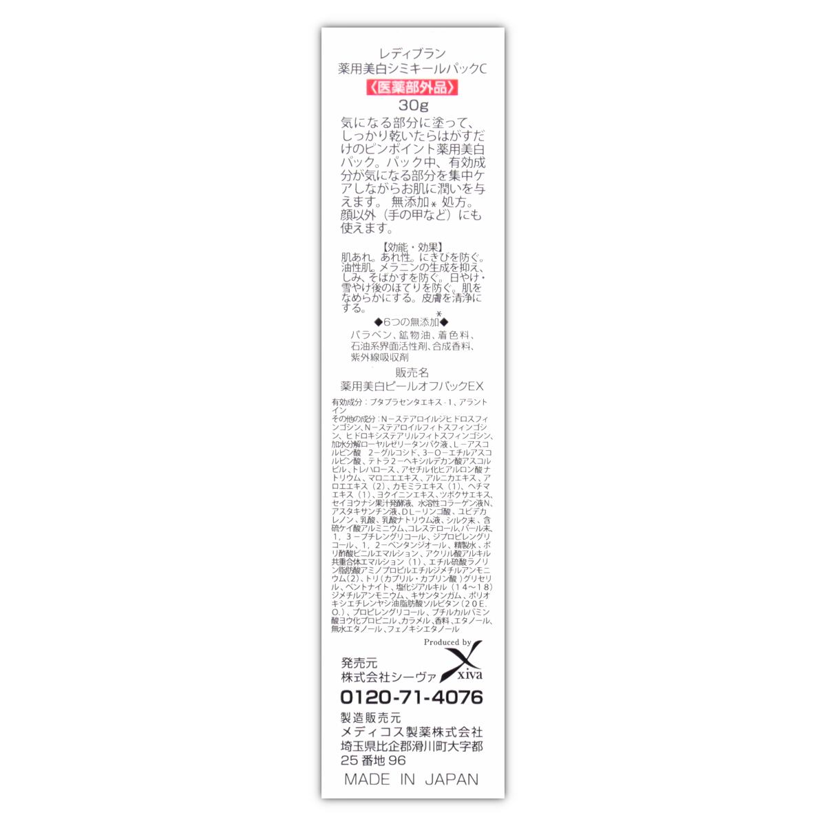 シミキールパックVC 30g レディブラン 薬用 シミ 日焼け パッチ そばかす ケア [医薬部外品] メール便送料無料NYH / シミキールパックVCS04-02 / SMKPVC-01P